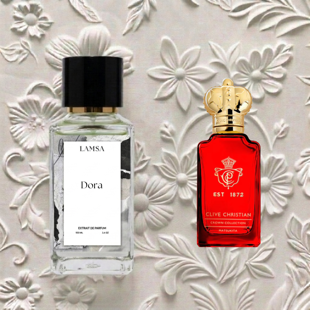 Dora عطر منعش وأنيق مستوحى من Town & Country من Clive Christian. يبدأ بانتعاش حمضي مشرق يمنح إحساسًا بالنقاء والحيوية. ومع تطوره تظهر الأعشاب العطرية والعنبر لتخلق عطرًا عصريًا راقيًا.