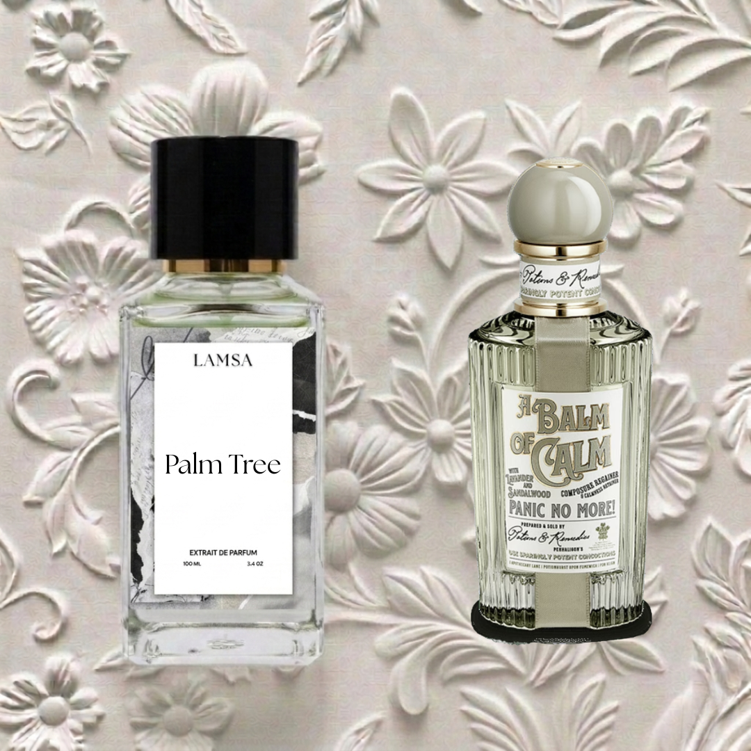 Palm Tree is a soothing and refreshing fragrance inspired by A Balm of Calm by Penhaligon’s. The scent opens with fresh herbal notes and soft citrus that create a calming and uplifting atmosphere. As it develops, gentle florals and smooth woods add warmth and balance.